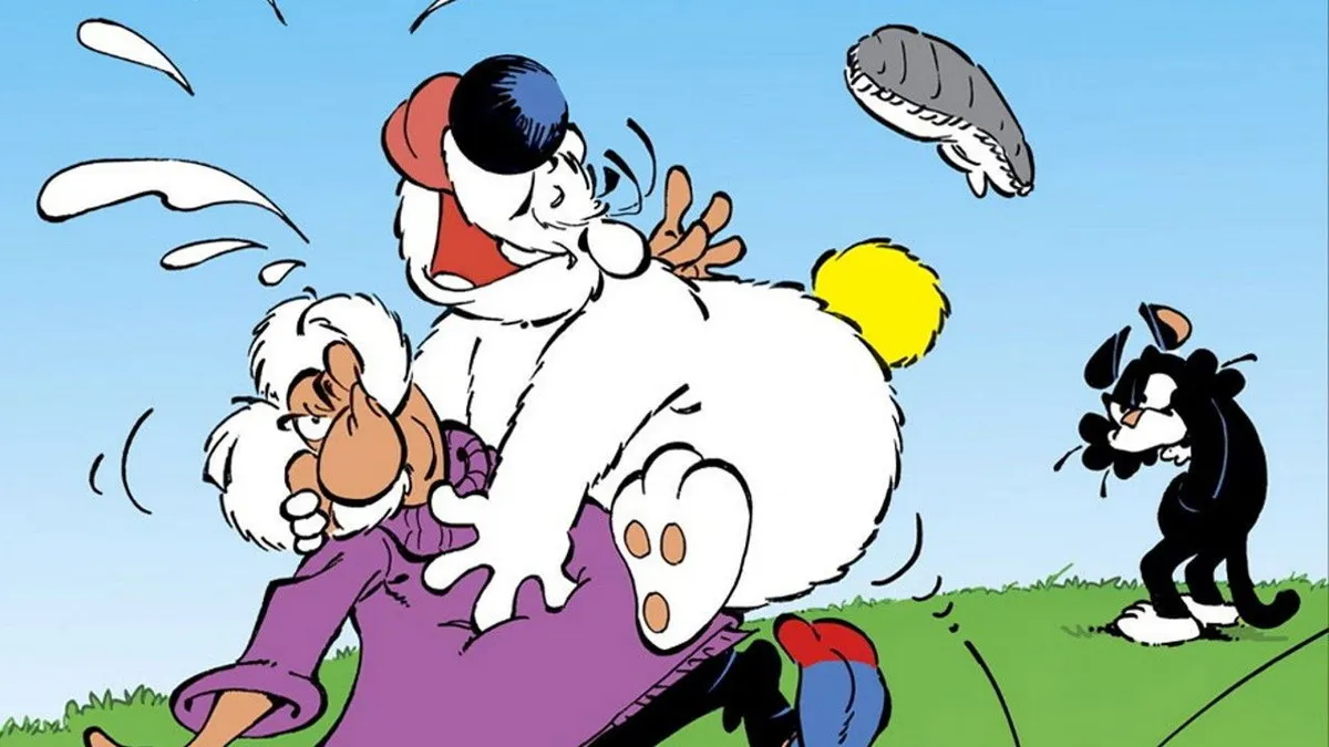 Impossible d'oublier ce grand toutou blanc, pataud et délicieusement gourmand. Cubitus, c'est le bobtail à la truffe noire et au cœur d'or qui vit mille petites aventures quotidiennes avec son maître Sémaphore — vieux loup de mer ronchon mais tendre — et se livre à une guerre de voisinage aussi ancienne que drôle avec le chat Sénéchal. Entre siestes monumentales, orgies de chocolat et commérages, chaque épisode est un concentré de gags visuels et de tendresse qui a marqué toute une génération.